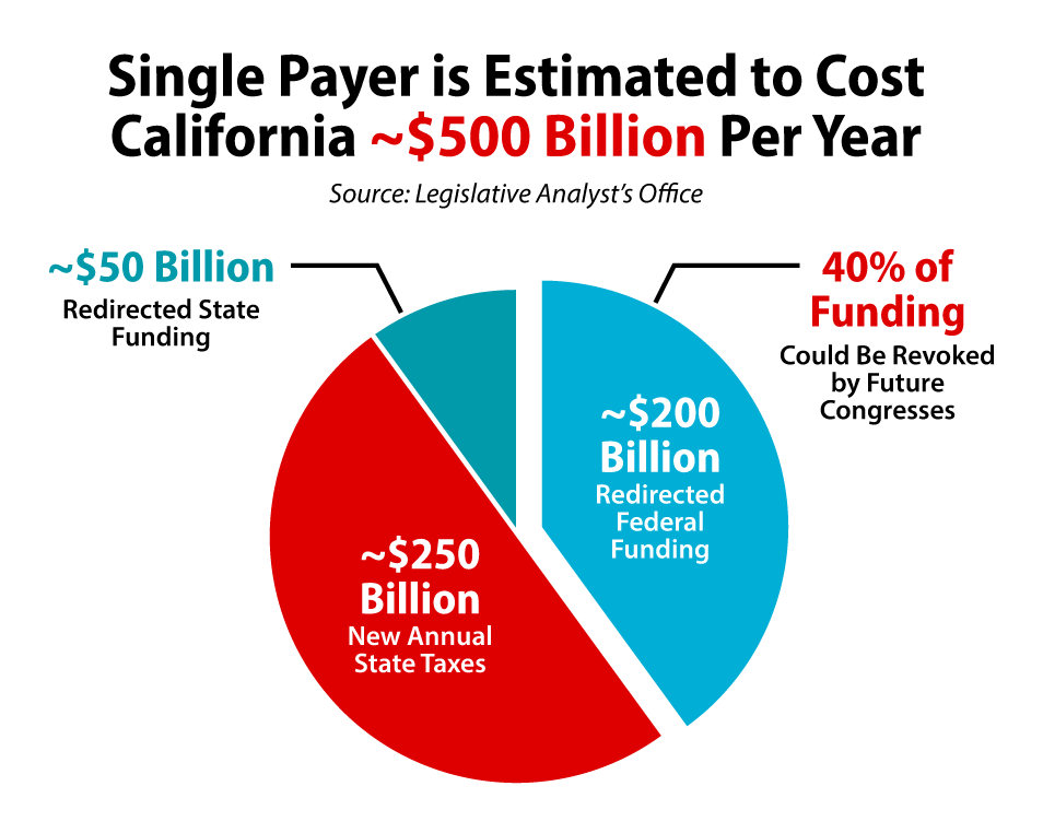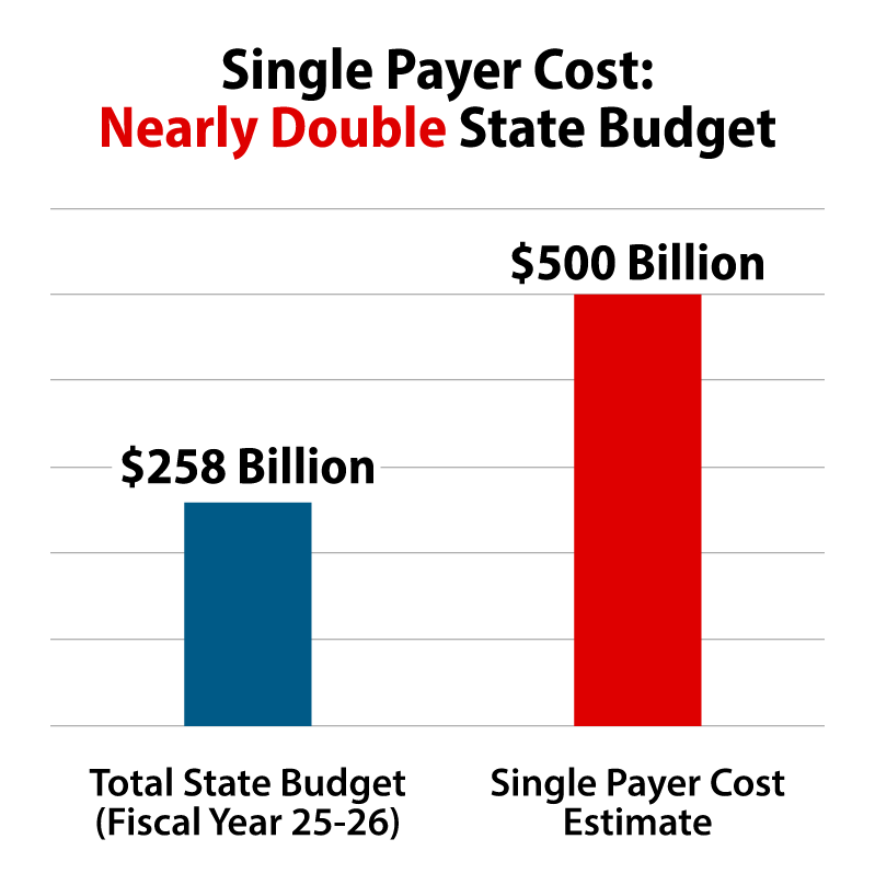 Single payer is not “free health care.” The Legislative Analyst’s Office (LAO) estimates it would cost $494 billion – $552 billion annually – nearly double California’s entire state budget. That price tag would require the largest tax increase in state history, driving up costs for families and businesses already under pressure.